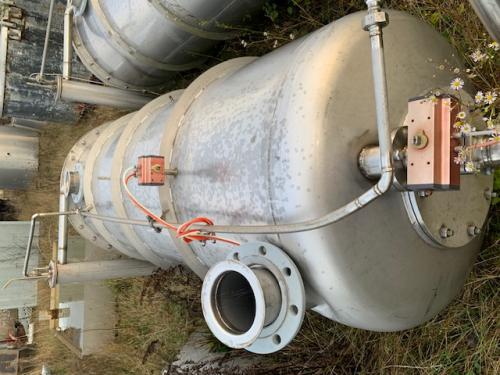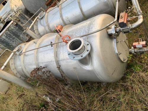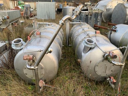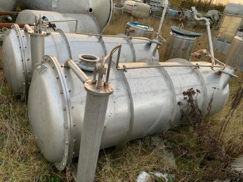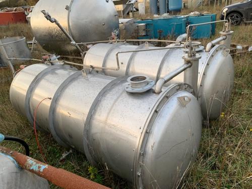 Kraftigt udførte tanke med kuplede ender og stort ind og udløb.Liggende på ben.