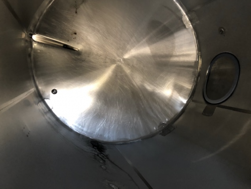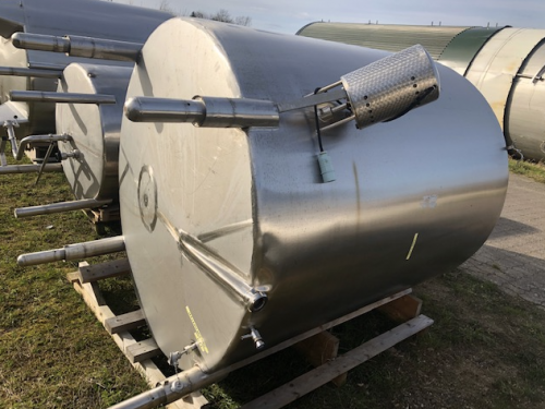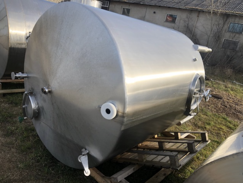 Opretstående tank med omrører i siden.Mandeluge i siden og i toppen.Justerbare ben.Prøveudtag.Plan skrå bund.