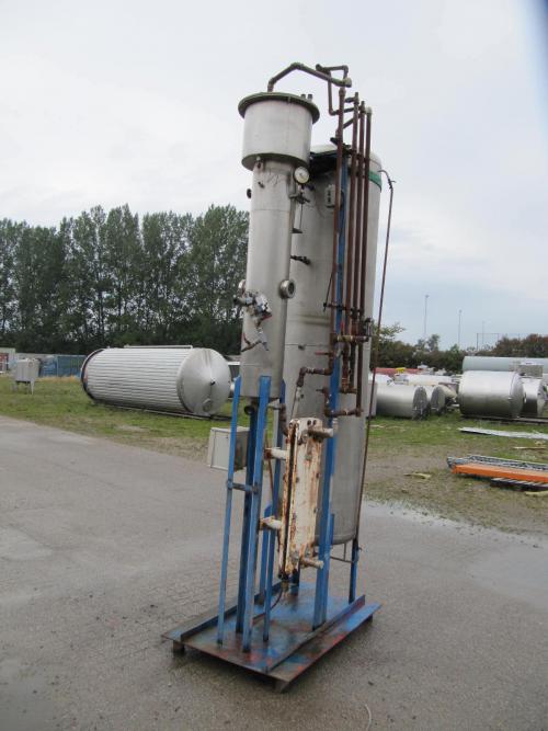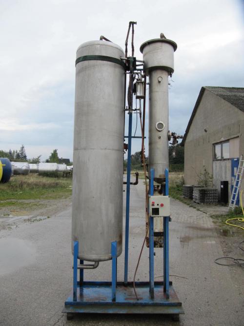 Kapacitet ca 150 liter pr. timeInddamperkolonne, produkttank, pladeveksler,cirkulationspumpe og vacuumpumpe.Dimensioner bredde 1,5 m , dybde 1 m , højde 4 m.Anlægget skal reetableres med rørføring og ny styring.
