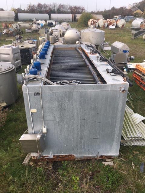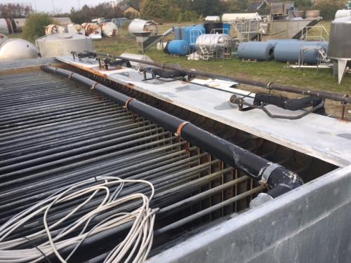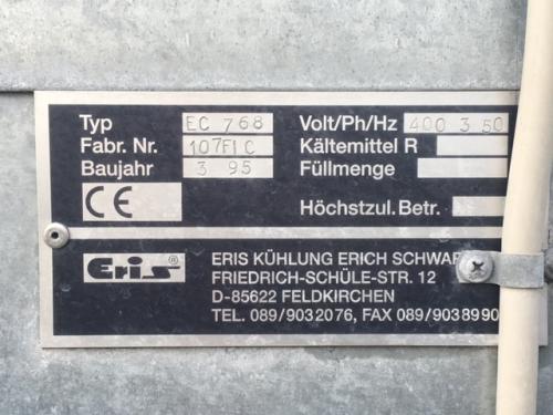 Eris KühlungMed 7 stk. propeller for at hindre isdannelse.Kølerør i hele tanken.Isoleret.Med styreskab.Dimensioner2000 x 2000 x 6000 mm