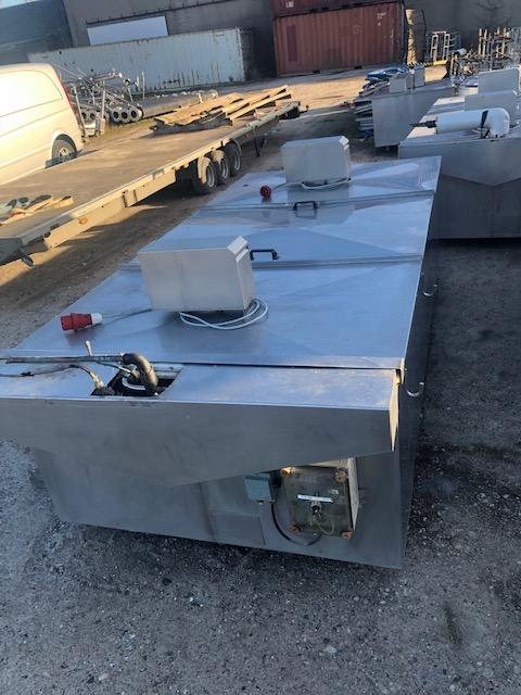 2 stk. på lagerMed 2 stk. omrørere i toppen.Aftagelige låger .Kølekompressor der passer til haves.2000 liter totalt volumen.DimensionerL : 2970 mmB : 1380 mmH : 820 mm