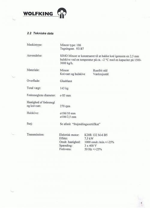 Wolfking Impeller 200/80-7pxu V1200LSimopumpe Fødesneglsdiameter ø190mm, 19 rpmMotor:7,5 Kw, 960 rpm 3x400V 50 hzGear : udveksling 1:18 moment 5500 NmVnr 130 0013